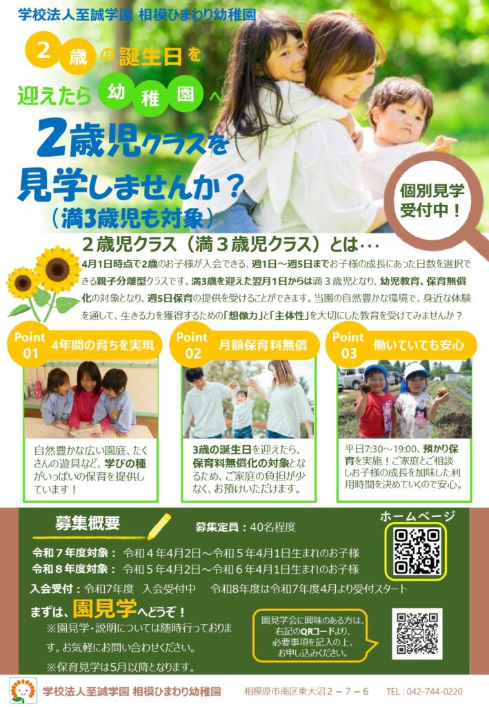【2歳児教室・満3歳児教室 保育見学説明会のご予約はHPトップから応募】